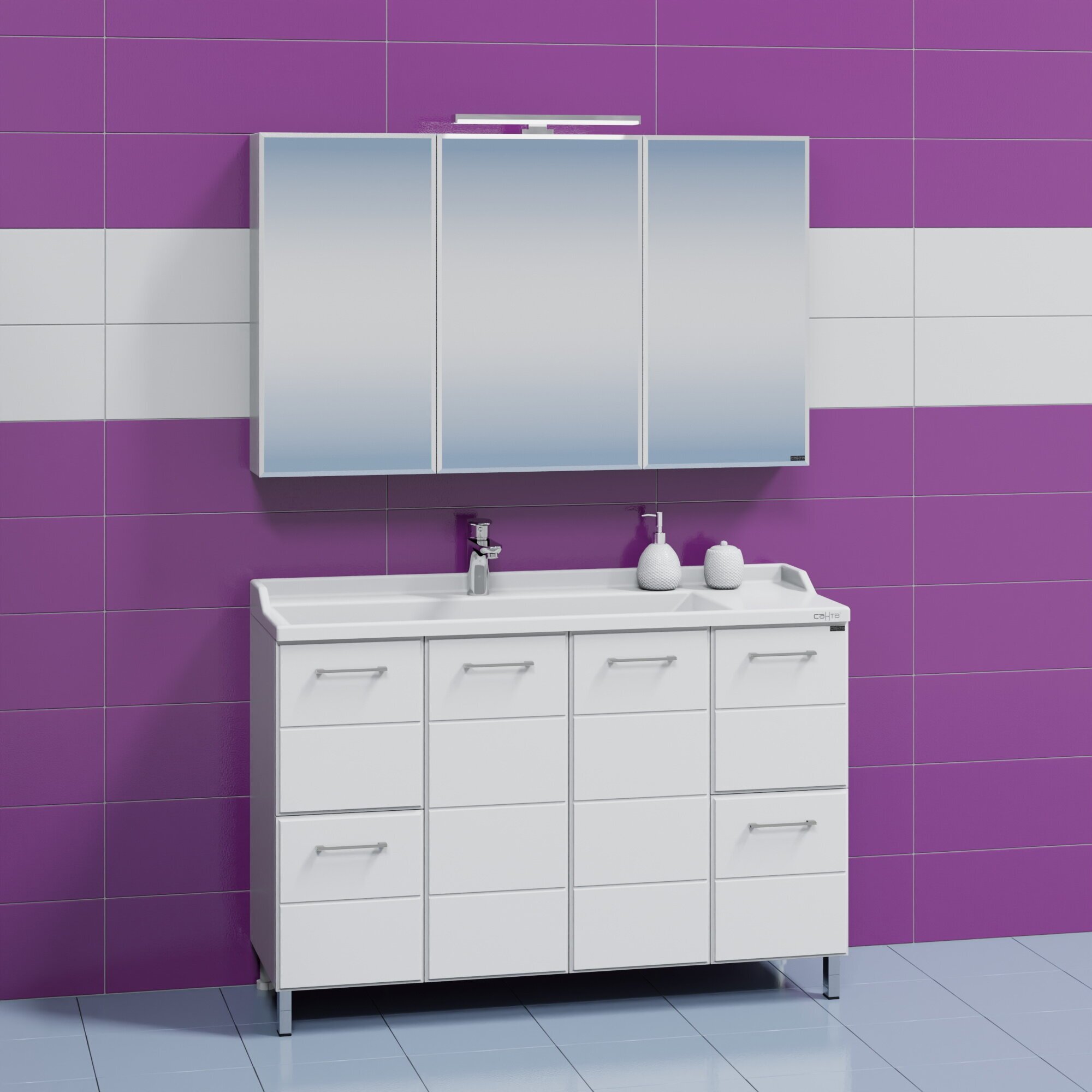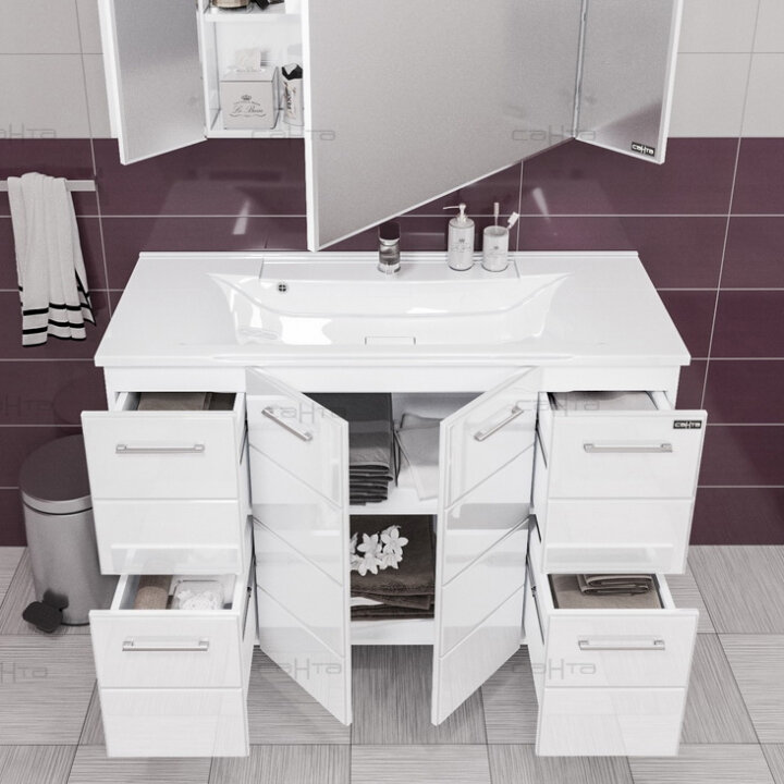 Тумба с раковиной СанТа Омега 120 4 ящика Белая