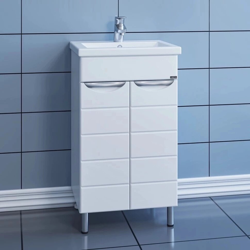 Тумба с раковиной Санта Родос 50 изготовлена из качественных материалов в современном элегантном стиле. Поможет в создании ультрамодной ванной комнаты с сохранением актуальной функциональности. Предназначена для использования в условиях повышенной влажности.