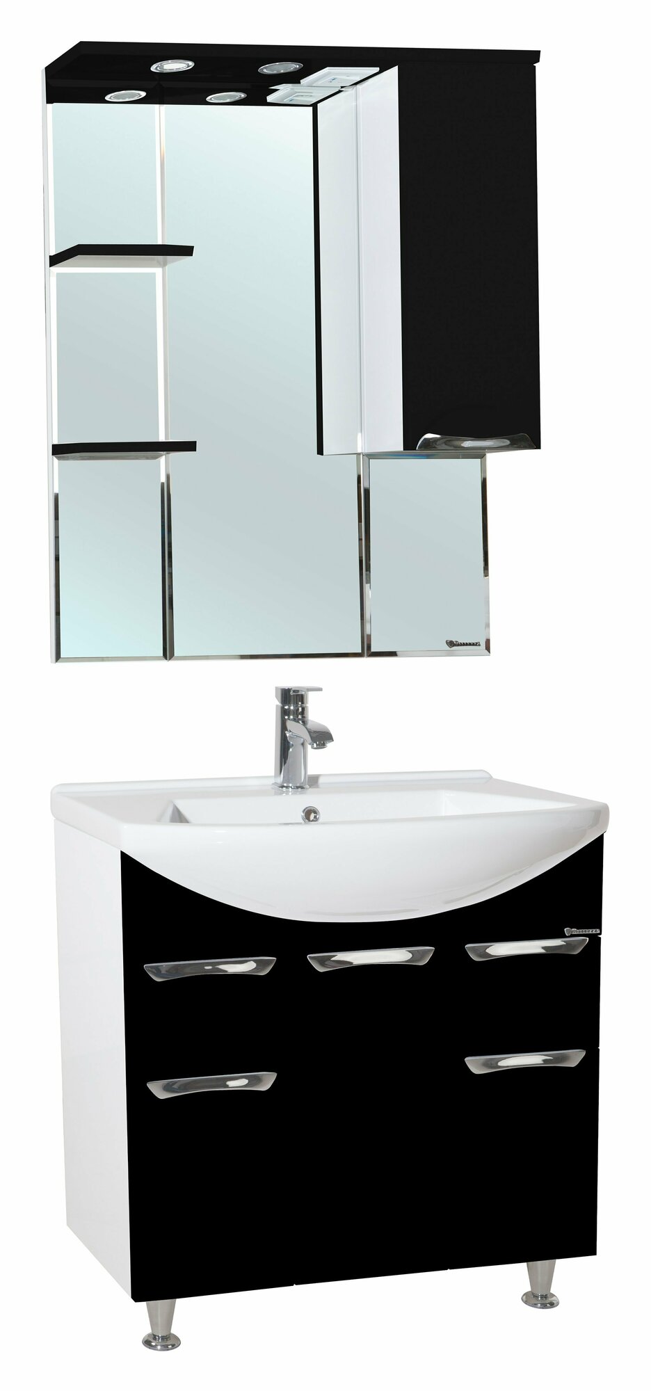 Зеркало со шкафом Bellezza Альфа 75 R с подсветкой. Цвет: белый/черный. Артикул: 4618812001045.Зеркало со шкафом станет отличным функциональным решением для Вашей ванной комнаты. Прекрасно дополнит интерьер и подарит комфорт и уют. - Ориентация: правая.- Изготовлено из влагостойких МДФ и ДСП с четырехслойным лаковым покрытием (Италия). Материалы устойчивы к повышенной влажности, перепадам температур, развитию грибков и микроорганизмов.- Одна распашная дверца с доводчиками для плавного и бесшумного закрывания.- Оригинальная ручка с углублением для удобного открывания.- Внутренние и внешние полочки.- Встроенная подсветка мощностью 20 Вт.- Электровыключатель с розеткой.- Цвет фурнитуры: хром.- Габариты (ШхВхГ): 75x100x16,5 см.- Монтаж: подвесной. В комплекте поставки: Зеркало со шкафом.