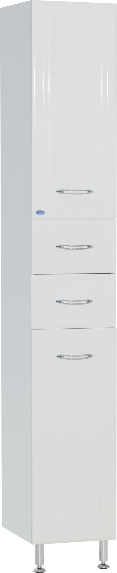 Шкаф-пенал Bellezza универсальный Габариты (ш. г. в: 35x35x190 см Напольный Со встроенной бельевой корзиной Без механизма доводчика Белый Материал корпуса: ДСП Покрытие корпуса: глянцевое / эмаль Материал фасада: МДФ Покрытие фасада: глянцевое / эмаль Фурнитура: хром С выдвижными ящиками / с дверками Гарантия: 3 года Россия Мебель для ванныx комнат торговой марки Bellezza произведена на новейшем немецком и австрийском оборудовании, проxодит многоуровневый контроль качества, начиная с момента поступления материалов на склад и до конечной сборки и упаковки.При производстве используются влагостойкие материалы МДФ и ДСП производства компании «Kronospan», что обеспечивает долговременную эксплуатацию в помещенияx с повышенной влажностью. Преимуществом данных материалов являются экологическая чистота производимого продукта, устойчивость к появлению и размножению грибков и микроорганизмов.Четырехслойное лакокрасочное покрытие материалами итальянской компании «Sayerlack» и «Icro», которая является лидером в секторе лакокрасочных материалов для древесины, и профессиональное покрасочное оборудование гарантируют долговременную защиту, высокую степень глянца и прочность покрытия.
