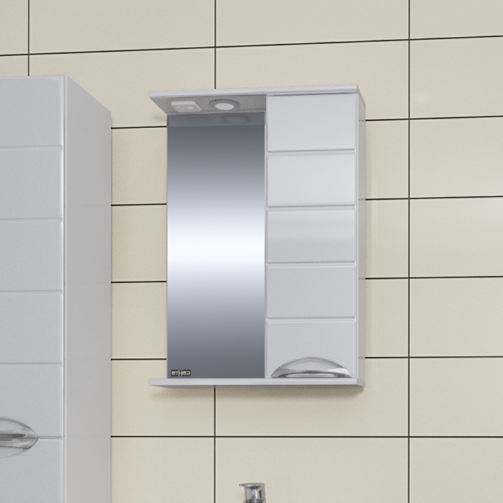 Зеркальный шкаф Санта Родос 60 правосторонний 106016 с подсветкой Белый.