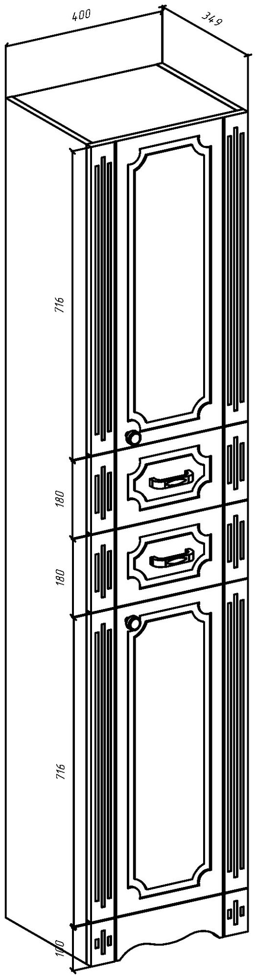 | ВКоробке | Шкаф-пенал - 1 шт. Вкладная полка - 2 шт. Комплект доводчиков - 1 шт. Инструкция - 1 шт. |