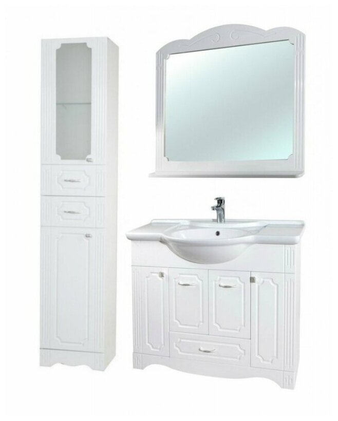 Шкаф-пенал Bellezza Кантри 40. Артикул: 4629905110018. Цвет: белый.Элегантный пенал станет отличным функциональным решением для Вашей ванной комнаты. Прекрасно дополнит интерьер и подарит комфорт и уют. - Ориентация: универсальная.- Изготовлен из влагостойких МДФ/ДСП с четырехслойным лаковым покрытием (Италия). Материалы устойчивы к повышенной влажности, перепадам температур, развитию грибков и микроорганизмов.- Две распашные дверцы с доводчиками для плавного и бесшумного закрывания (верхний фасад - матовое стекло, нижний - глухой).- Внутренние полочки.- Два ящика с механизмом полного выдвижения.- Волнообразный фигурный цоколь (съемный).- Габариты (ШхВхГ): 40x190x35 см.- Монтаж: напольный. В комплекте поставки: шкаф-пенал.