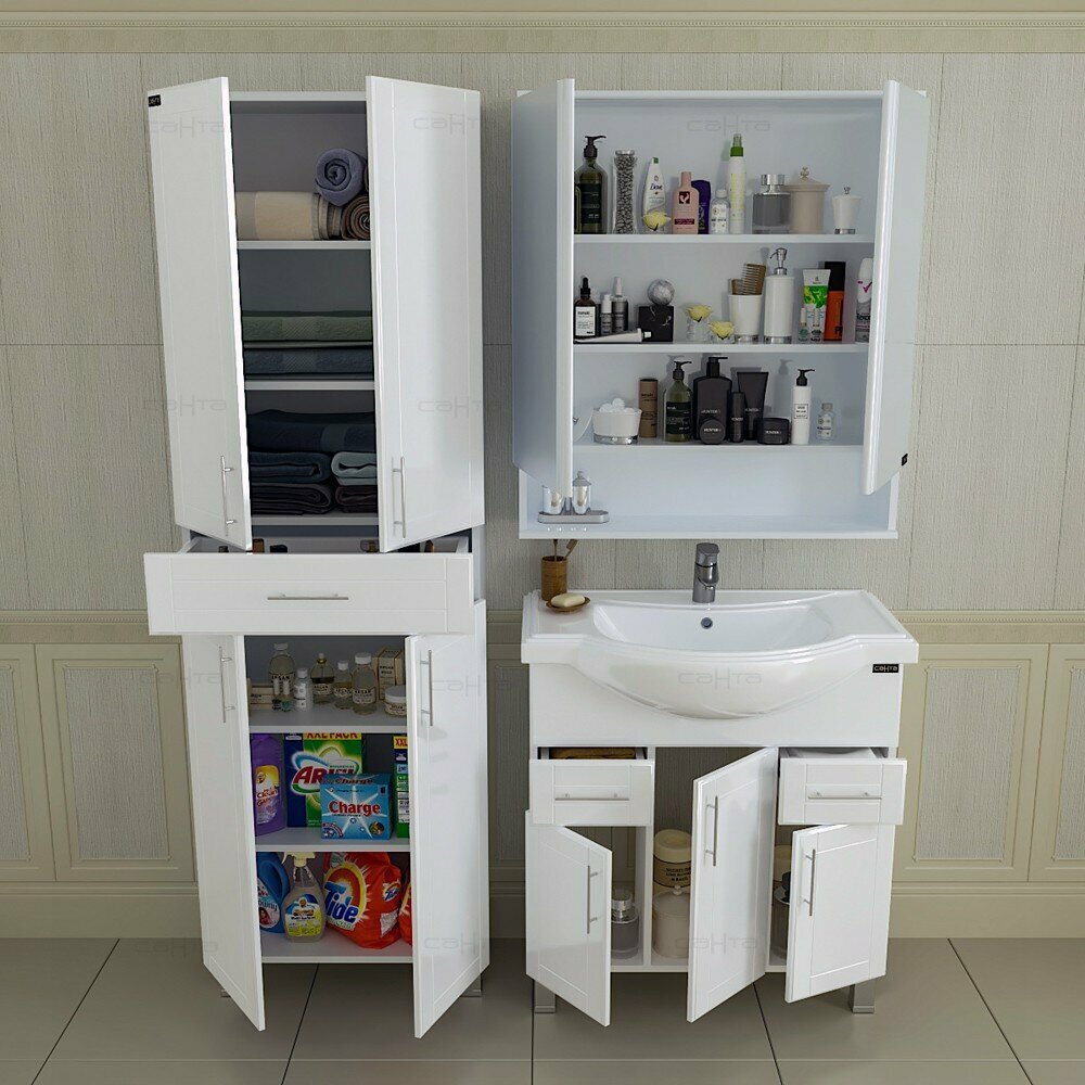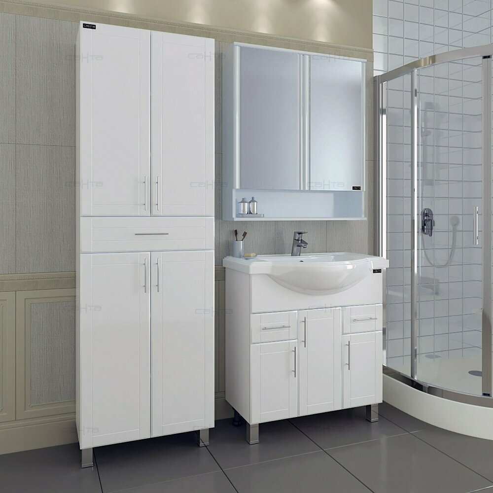 Шкаф пенал Санта Дублин 60 523002 Белый изготовлен из качественных материалов в современном элегантном стиле. Поможет в создании ультрамодной ванной комнаты с сохранением актуальной функциональности. Предназначен для использования в условиях повышенной влажности.