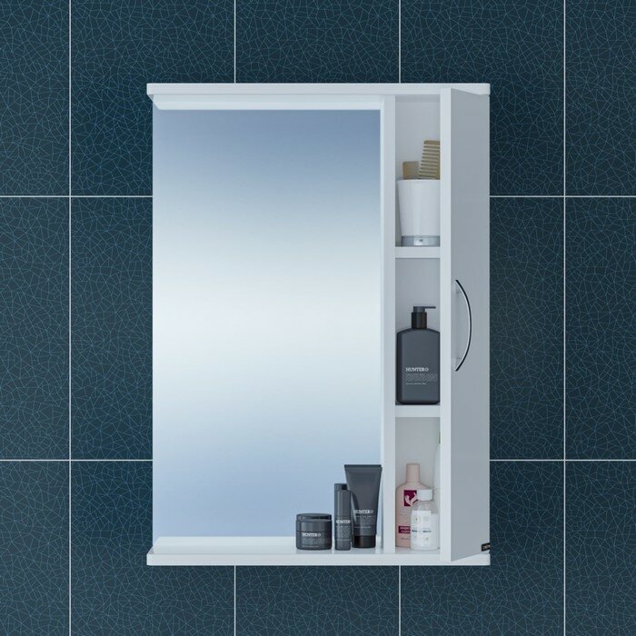 Зеркало для ванной комнаты. Корпус изделия произведен из влагостойкого ДСП с покрытием ПВХ пленкой методом мембранно-вакуумного прессования, что позволяет достичь почти 100% водонепроницаемости и придаёт продукции эстетичный внешний вид. Фасад изделия из МДФ с покрытием ПВХ пленкой методом мембранно-вакуумного прессования, что позволяет достичь почти 100% водонепроницаемости.