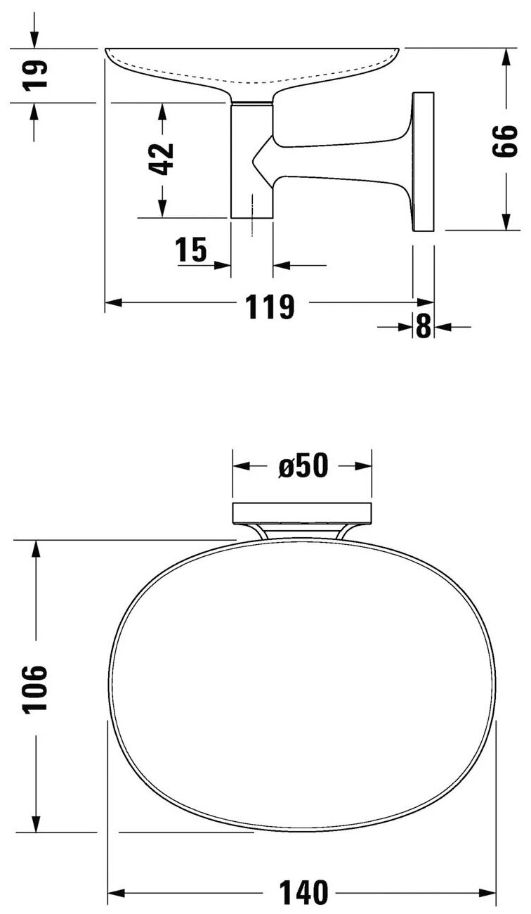 Мыльница Duravit Starck T 0099331000 выполнена в современном стиле и впишется в интерьер любой ванной комнаты.Габариты, м (ШxВxГ): 14x6.6x11.9 Монтаж: Подвесной. В комплекте поставки:Мыльница настенная
