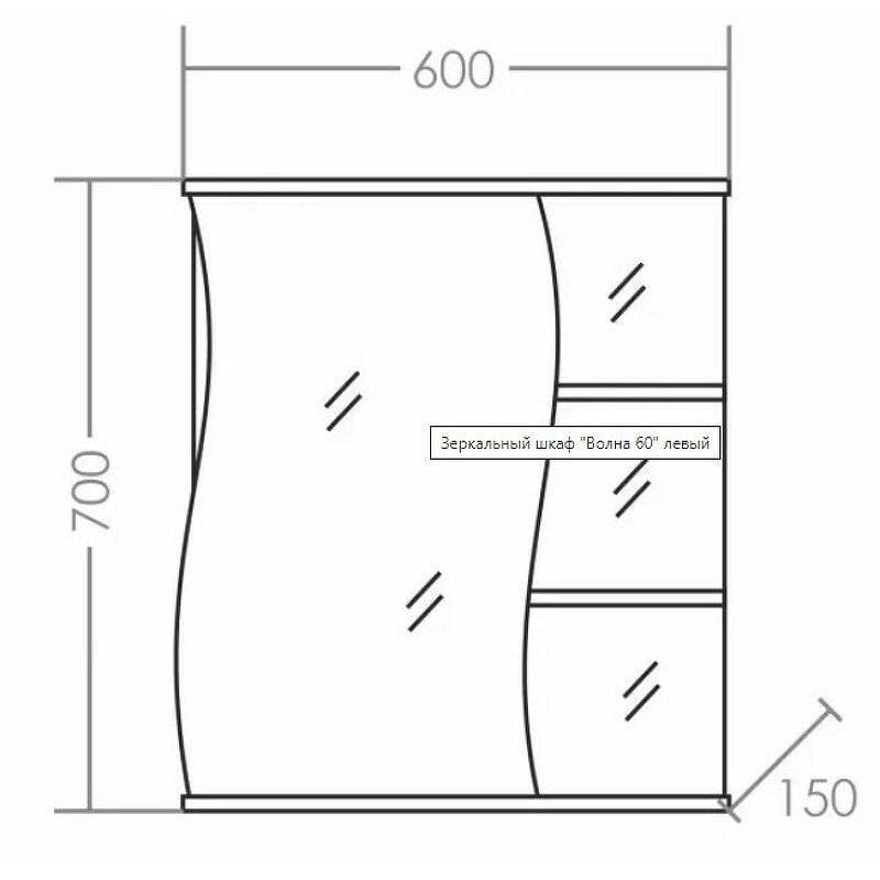 Зеркальный шкаф Санта Волна 60 левосторонний 101013 Белый.