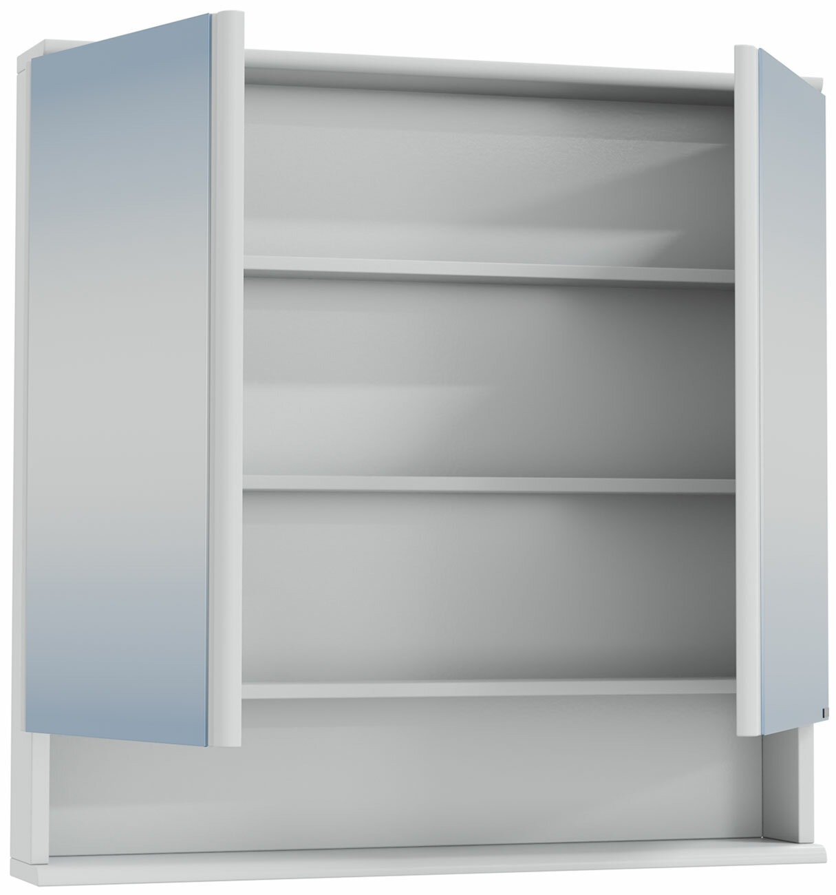 - Шкаф оснащен двумя дверцами с двойным зеркалом на петлях с доводчиками для плавного и бесшумного открытия и закрытия.