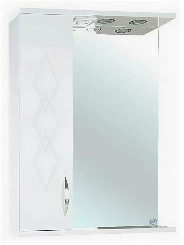 Зеркало со шкафом Bellezza Элеганс 60 L. Артикул: 4618609522012. Цвет: белый.Станет отличным функциональным решением для Вашей ванной комнаты. Прекрасно дополнит интерьер и подарит комфорт и уют. - Ориентация: левая.- Изготовлено из влагостойких МДФ/ДСП с четырехслойным лаковым покрытием (Италия). Материалы устойчивы к повышенной влажности, перепадам температур, развитию грибков и микроорганизмов.- Одна распашная дверца с доводчиками для плавного и бесшумного закрывания.- Фасад декорирован фрезеровкой с ромбовидным рисунком.- Внутренние полочки, внешняя полочка.- Встроенная подсветка мощностью 20 Вт.- Электровыключатель с розеткой.- Габариты (ШхВхГ): 60x74x15 см.- Монтаж: подвесной. В комплекте поставки: Зеркало со шкафом.