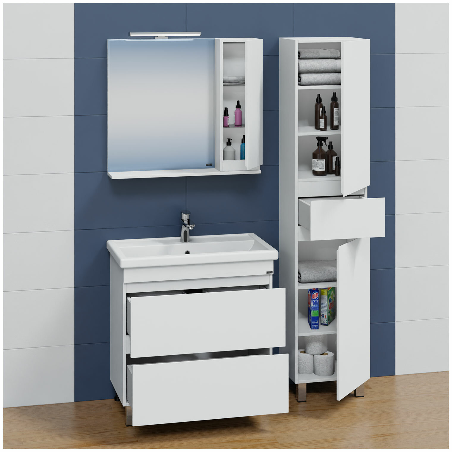 Шкаф пенал Санта Марс 40 700165 Белый изготовлен из качественных материалов в современном элегантном стиле. Поможет в создании ультрамодной ванной комнаты с сохранением актуальной функциональности. Предназначен для использования в условиях повышенной влажности.