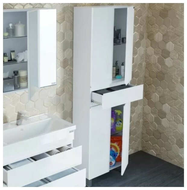 Шкаф пенал Санта Марс 60 700167 Белый изготовлен из качественных материалов в современном элегантном стиле. Поможет в создании ультрамодной ванной комнаты с сохранением актуальной функциональности. Предназначен для использования в условиях повышенной влажности.