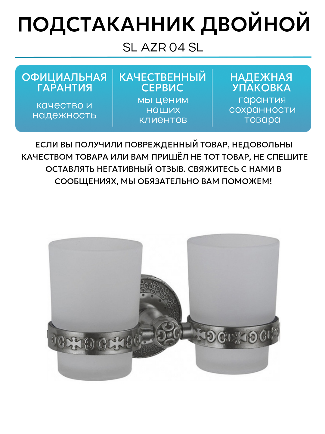 Стакан Zorg Antic AZR 04 SL двойной настенного монтажа с держателем из латуни с хромированным покрытием. Ширина 17.4 см.