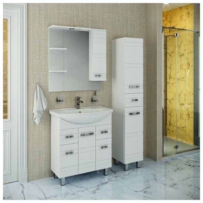 - Справа от зеркала шкафчик с распашной дверцей и с одной внутренней полкой.