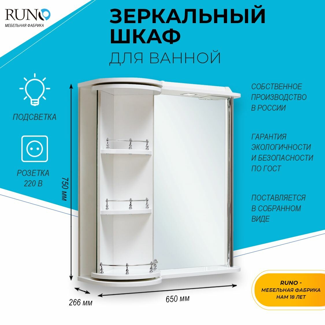 Зеркало со шкафом Runo Секрет 65 L 00000000580 с подсветкой.