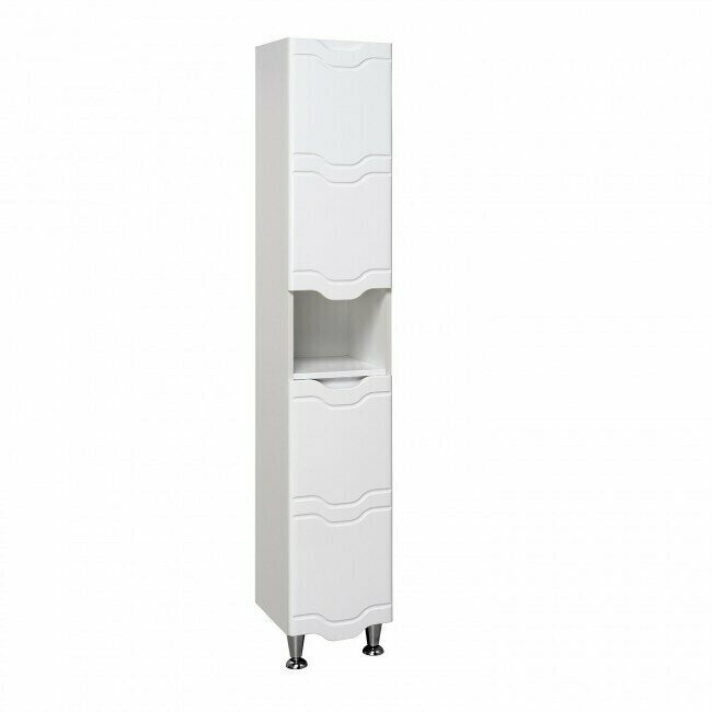 Пенал для ванной Runo Стиль 00000001122 правый. Шкаф-колонна напольный с двумя распашными дверками и открытой нишей посередине. В верхнем отделении - одна внутренняя полка, нижнее отделение комплектуется полкой и корзиной для белья. Петли со встроенным доводчиком, ножки хром - 2шт, ножки пластик -2шт. Выпускается только в правом исполнении.