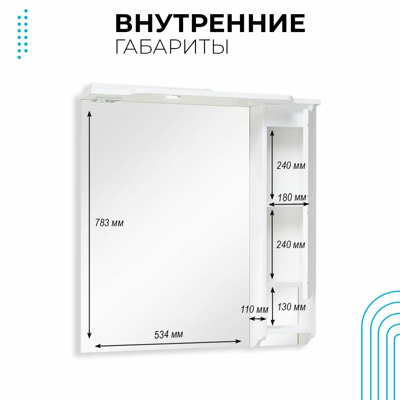 - Справа от зеркала шкафчик с распашной дверцей и одной внутренней полкой.