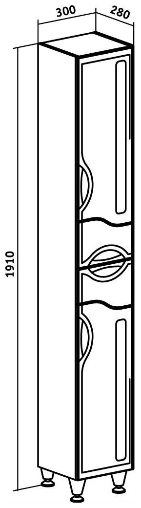- Размеры (ШхВхГ): 300х1910х280 мм.