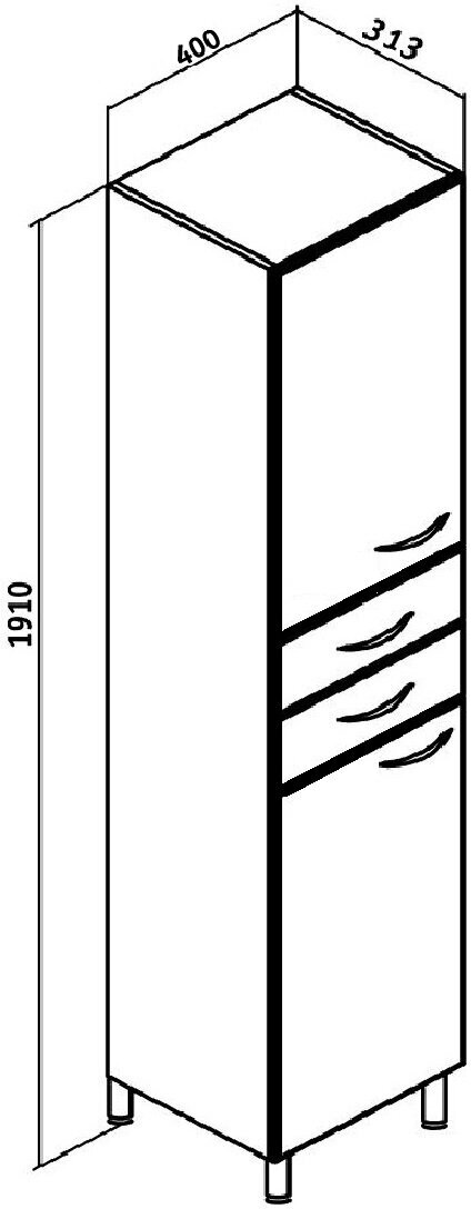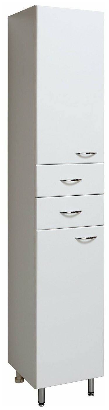 Пенал для ванной Runo Эконом 00000000131 левый. Шкаф-колонна напольный с двумя распашными дверками и выдвижными ящиками. В нижнем и верхнем отделениях - по одной внутренней полке. Ящики - на шариковых направляющих. Петли со встроенным доводчиком, ручки - 4 шт, ножки хром - 2 шт, ножки пластик -2шт.