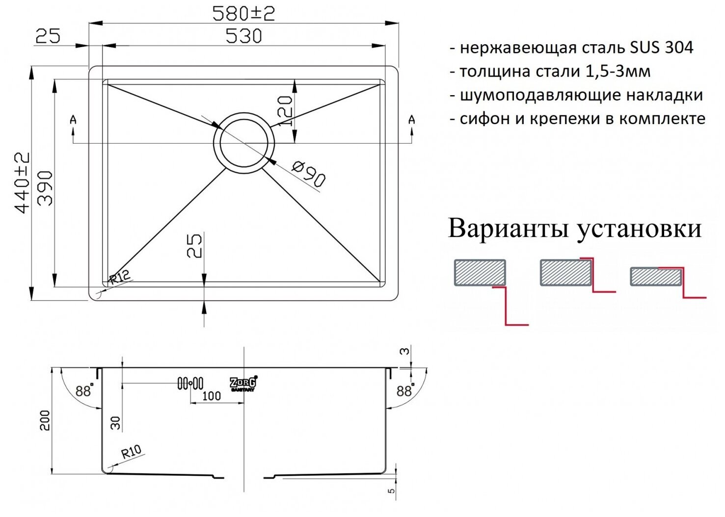 - Установка: Встраиваемая сверху, встраиваемая снизу, интегрированная (вровень со столешницей)