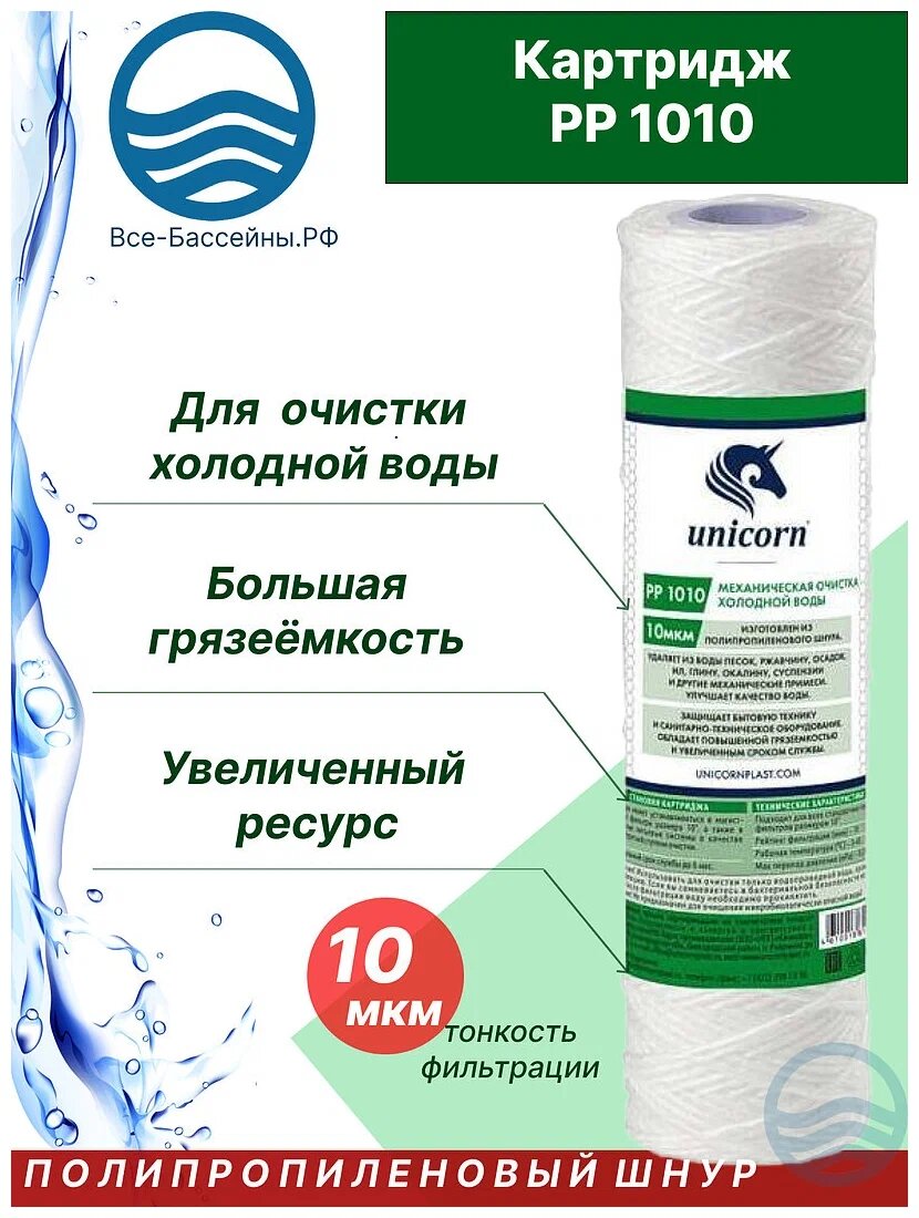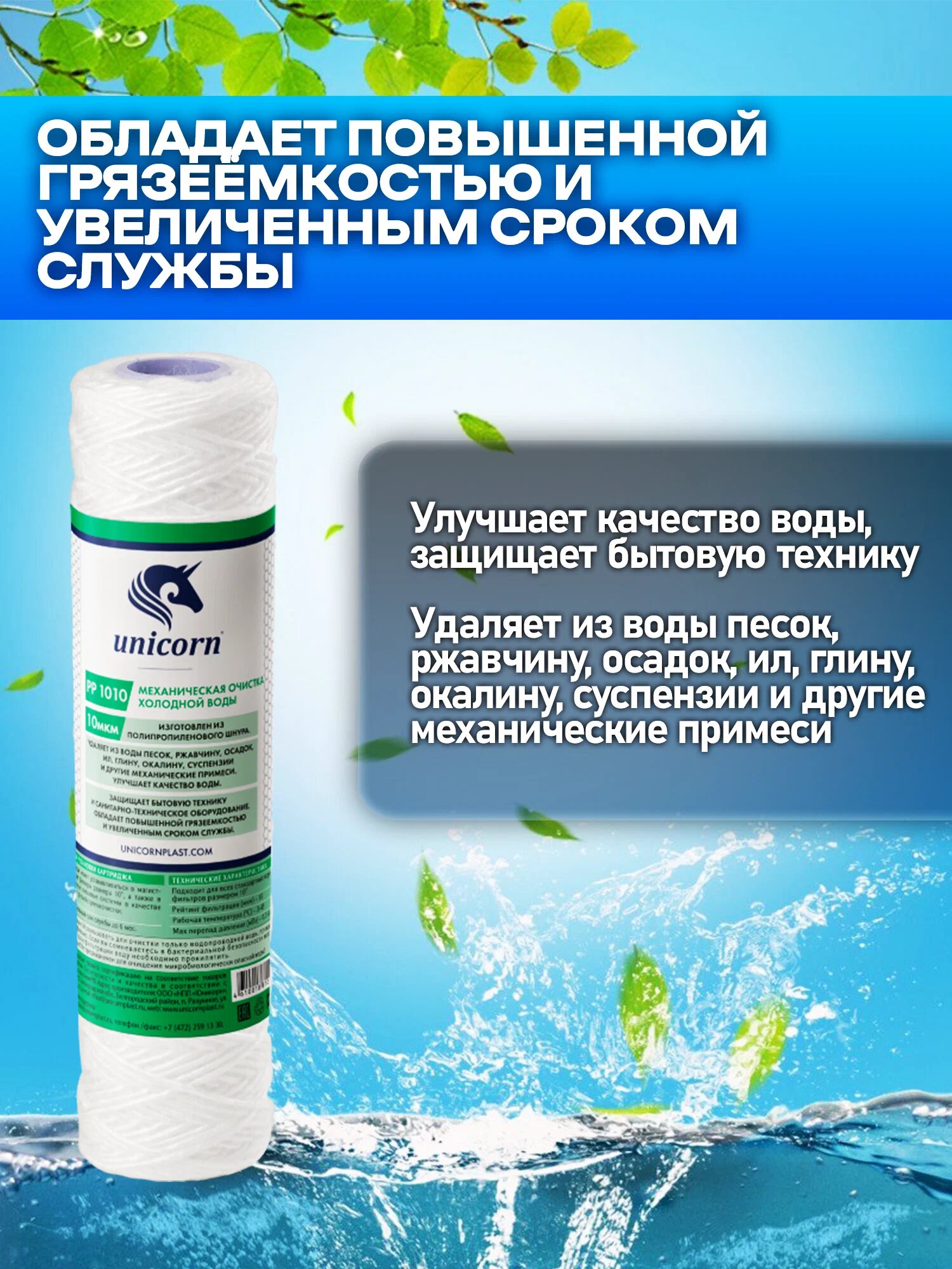 Картридж механической очистки Unicorn PP 1010 из полипропиленовой нити, 10 микрон, 10 дюймов.