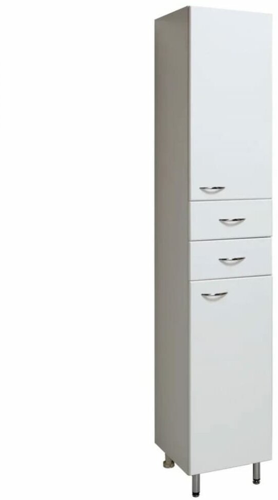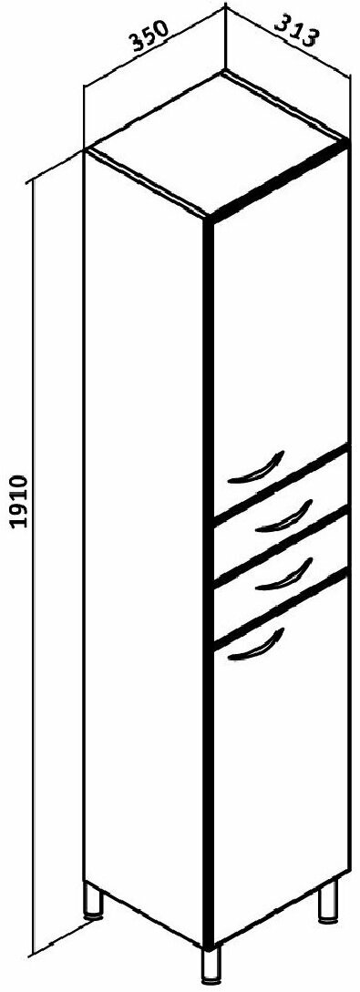 Пенал для ванной Runo Эконом 00000000129 правый. Шкаф-колонна напольный с двумя распашными дверками и выдвижными ящиками. В нижнем и верхнем отделениях - по одной внутренней полке. Ящики - на шариковых направляющих. Петли со встроенным доводчиком, ручки - 4 шт, ножки хром - 2 шт, ножки пластик -2шт.