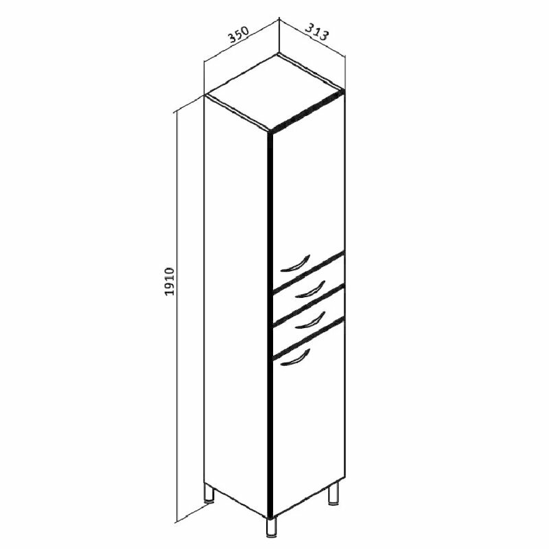 - Размеры (ШхВхГ): 350х1910х313 мм.