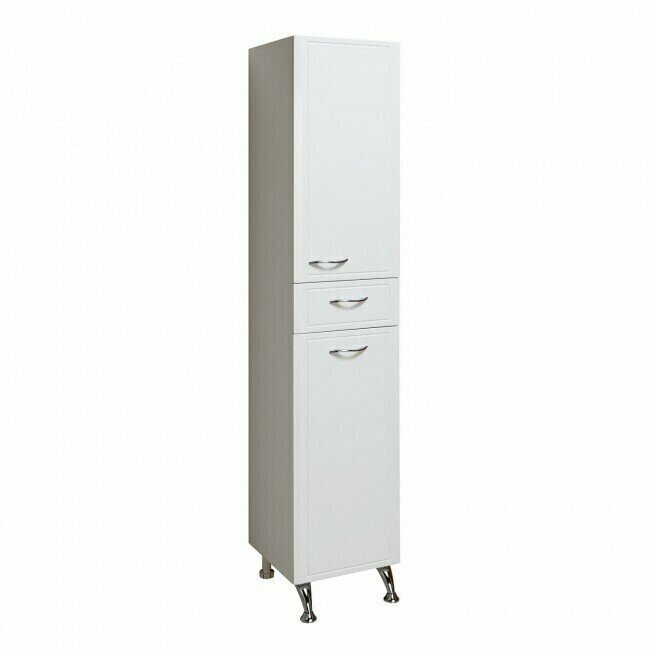 Пенал для ванной Runo Севилья 00000000601 правый. Шкаф-колонна напольный с двумя распашными дверками и выдвижным ящиком посередине. В верхнем отделении - одна внутренняя полка, нижнее отделение комплектуется полкой и корзиной для белья. Петли со встроенным доводчиком, ящик - на шариковых направляющих полного выдвижения, ручки - 3шт, ножки хром - 2шт, ножки пластик - 2шт. Выпускается только в правом исполнении.