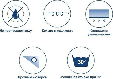 | ВКоробке | Штора для ванной - 1 шт. Кольца - 12 шт. Инструкция - 1 шт. |