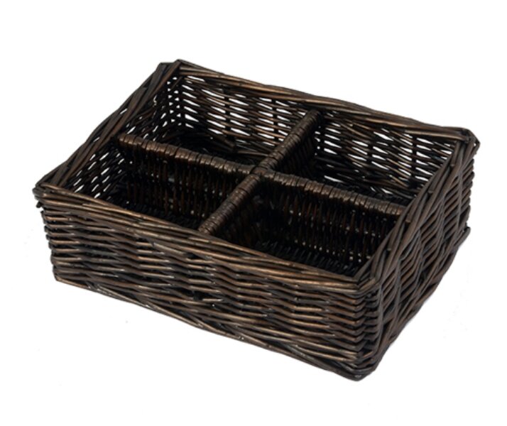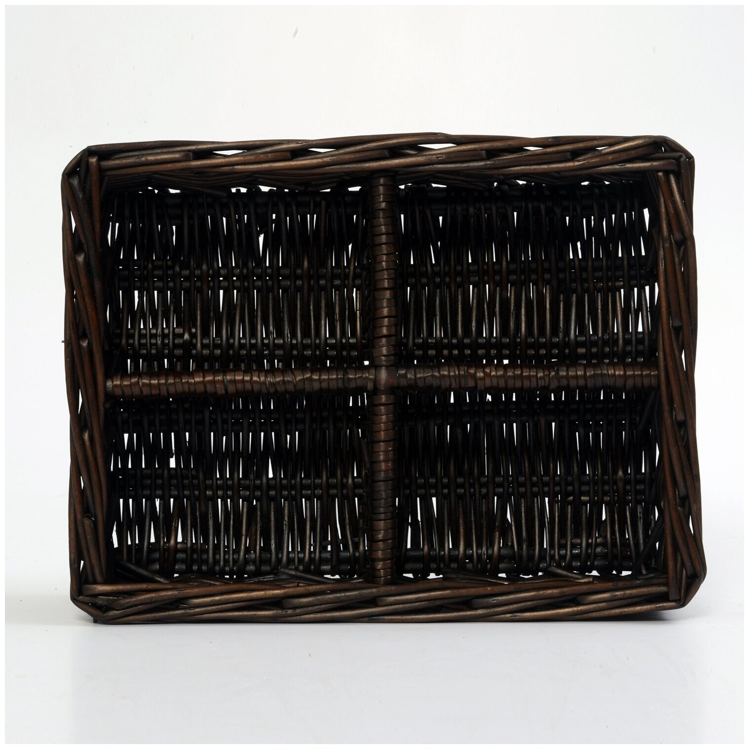 Корзина изготавливается из ивовых прутьев и покрывается водоотталкивающим составом. Цвет - темно-коричневый.