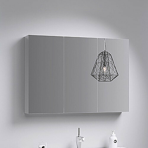 Зеркальный шкаф с тремя дверьми на петлях с плавным закрыванием. Ширина 100 см. Цвет белый.