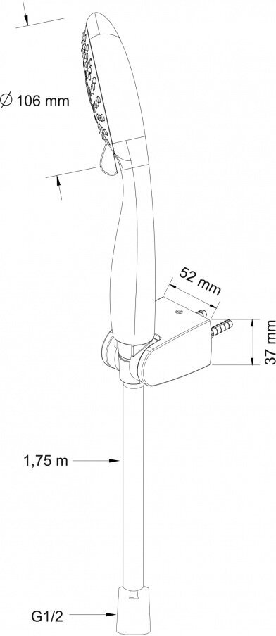 | Оснащение | настенный держатель, душевая лейка, шланг для душа |