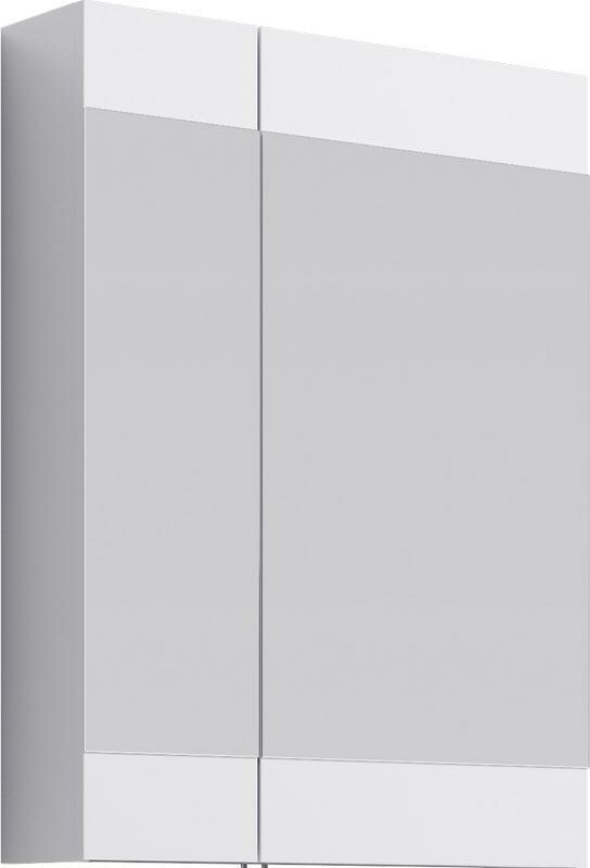 Зеркальный шкаф с двумя дверьми и внутренними стеклянными полочками. Ширина 60 см. Цвет белый.