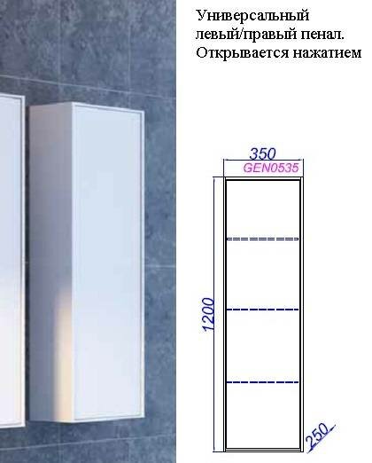 Шкаф пенал Aqwella 5 Stars Genesis 35 GEN0535W подвеснойимеет превосходный минималистичный дизайн, великолепно сочетающийся в современном интерьере ванных комнат. Шкаф имеет механизм открывания push-to-open: никаких выпирающих ручек, шкаф открывается посредством легкого нажатия на крышку фасада.