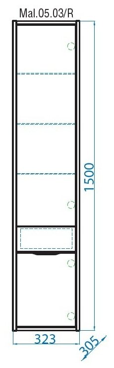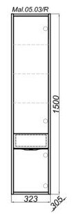 Шкаф пенал Aqwella 5 Stars Malaga 30 Mal.05.03/R имеет превосходный минималистичный дизайн, великолепно сочетающийся в современном интерьере ванных комнат. Пенал имеет верхиее отделение с механизмом открывания push-to-open: , шкаф открывается посредством легкого нажатия на крышку фасада, а также два нижних выдвижных ящика. Внутри верхнего отделения пенала размещенны три стеклянных полочки для удобного расположения косметики