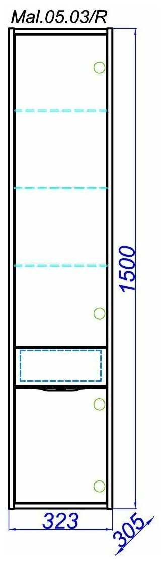 Габариты(ШxВxГ): 325x1500x310 мм.