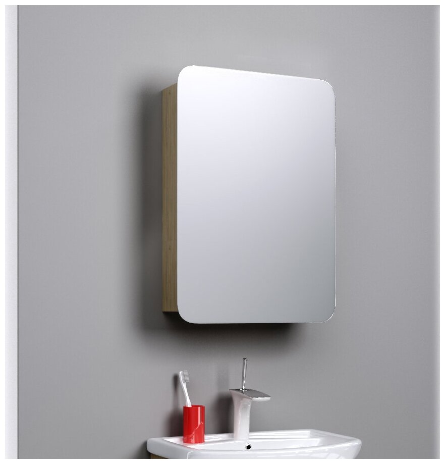 Зеркальный шкаф с одной дверью (петли установлены слева). Петли с интегрированными доводчиками. Ширина 50 см. Цвет дуб сонома.