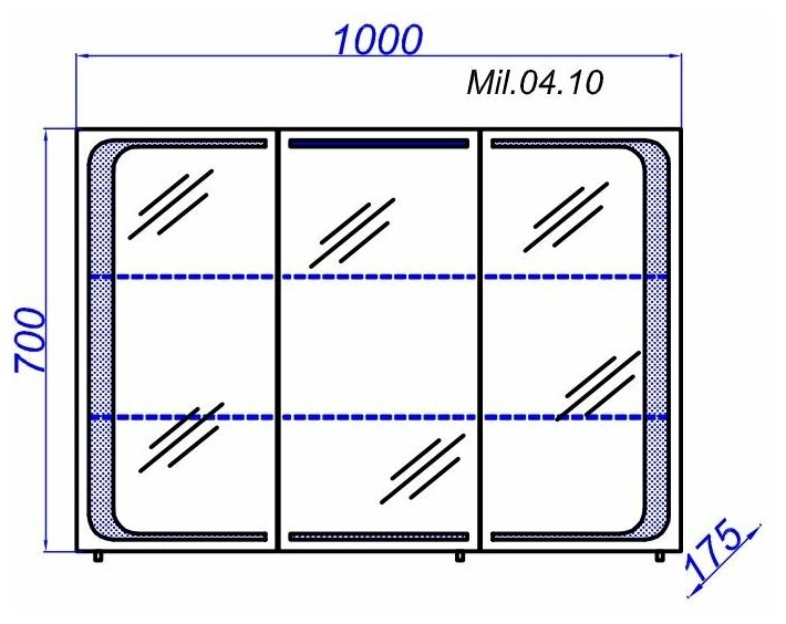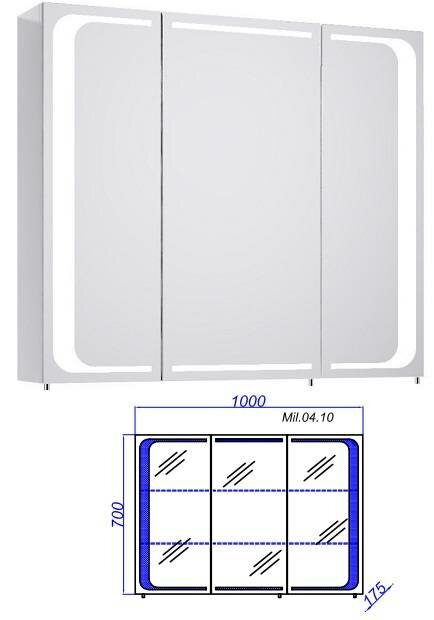 | ВКоробке | Зеркало-шкаф - 1 шт. Комплект подсветки - 1 шт. Комплект доводчиков - 1 шт. Вкладная стеклянная полка - 6 шт. Инструкция - 1 шт. |