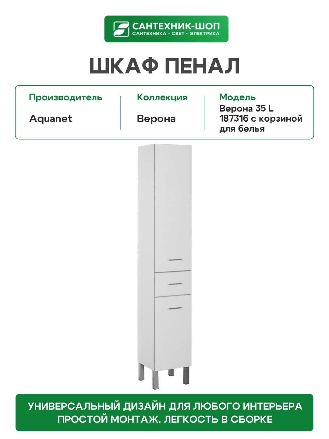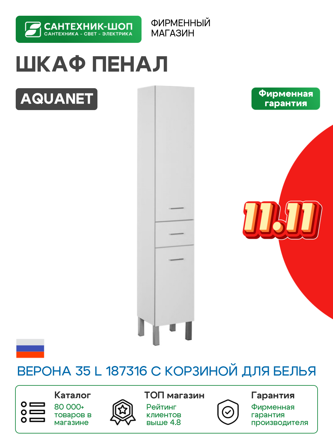 На сегодняшний день товар «Шкаф пенал Aquanet Верона 35 187316 с корзиной для белья L Белый» можно купить с кешбеком в 2 магазинах: Сантехника Тут, dushevoi