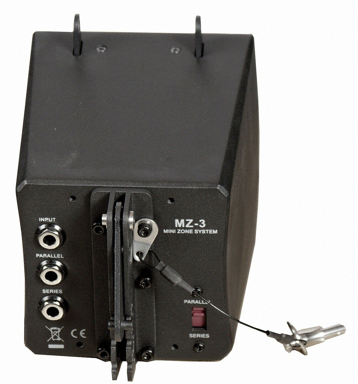 На задней панели расположены разъемы с параллельно-последовательным соединением и 3-мя точками подвеса M6. Крепежи для подвеса поставляются отдельно.