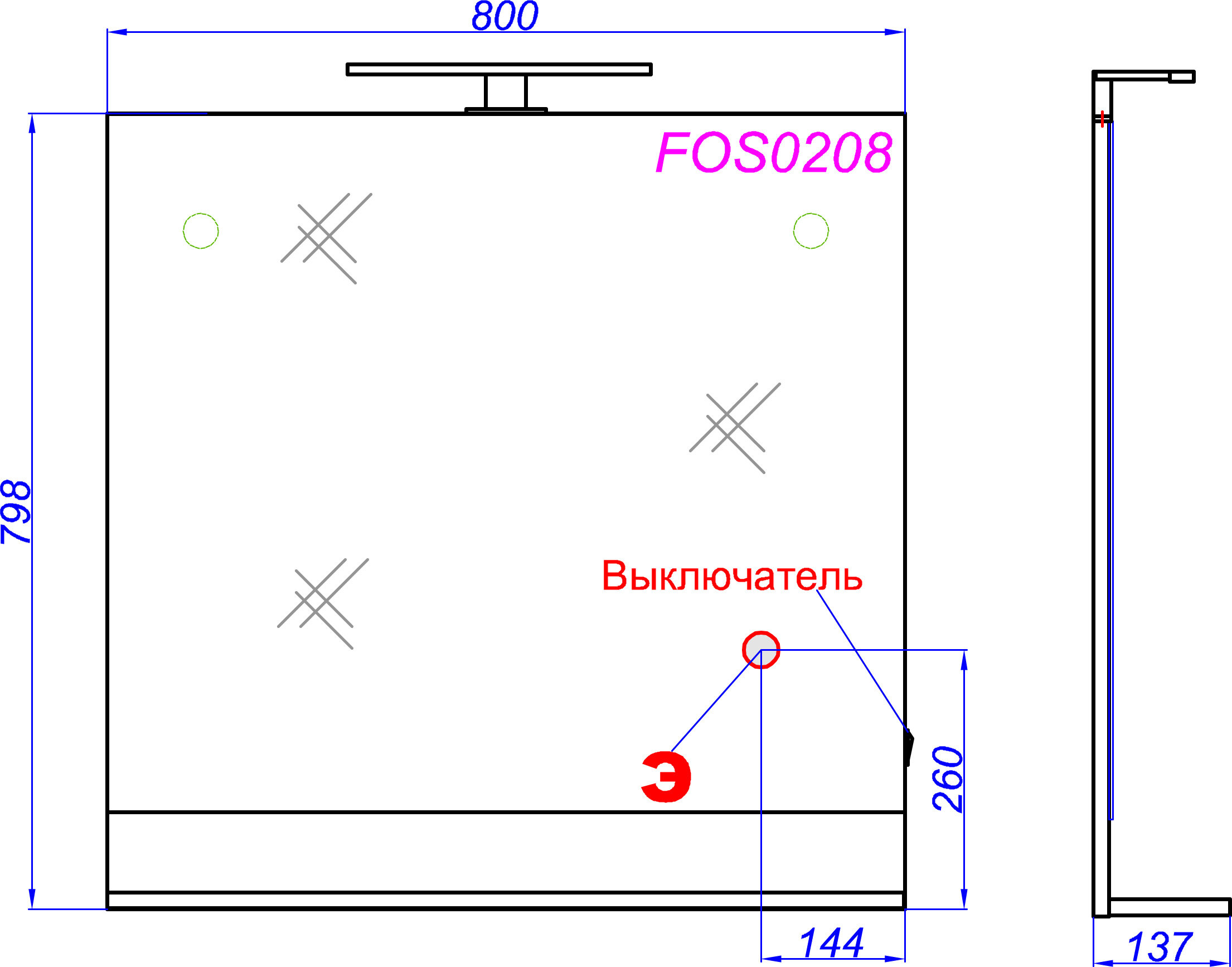 | Комплектация | выключатель; крепеж; полочка |