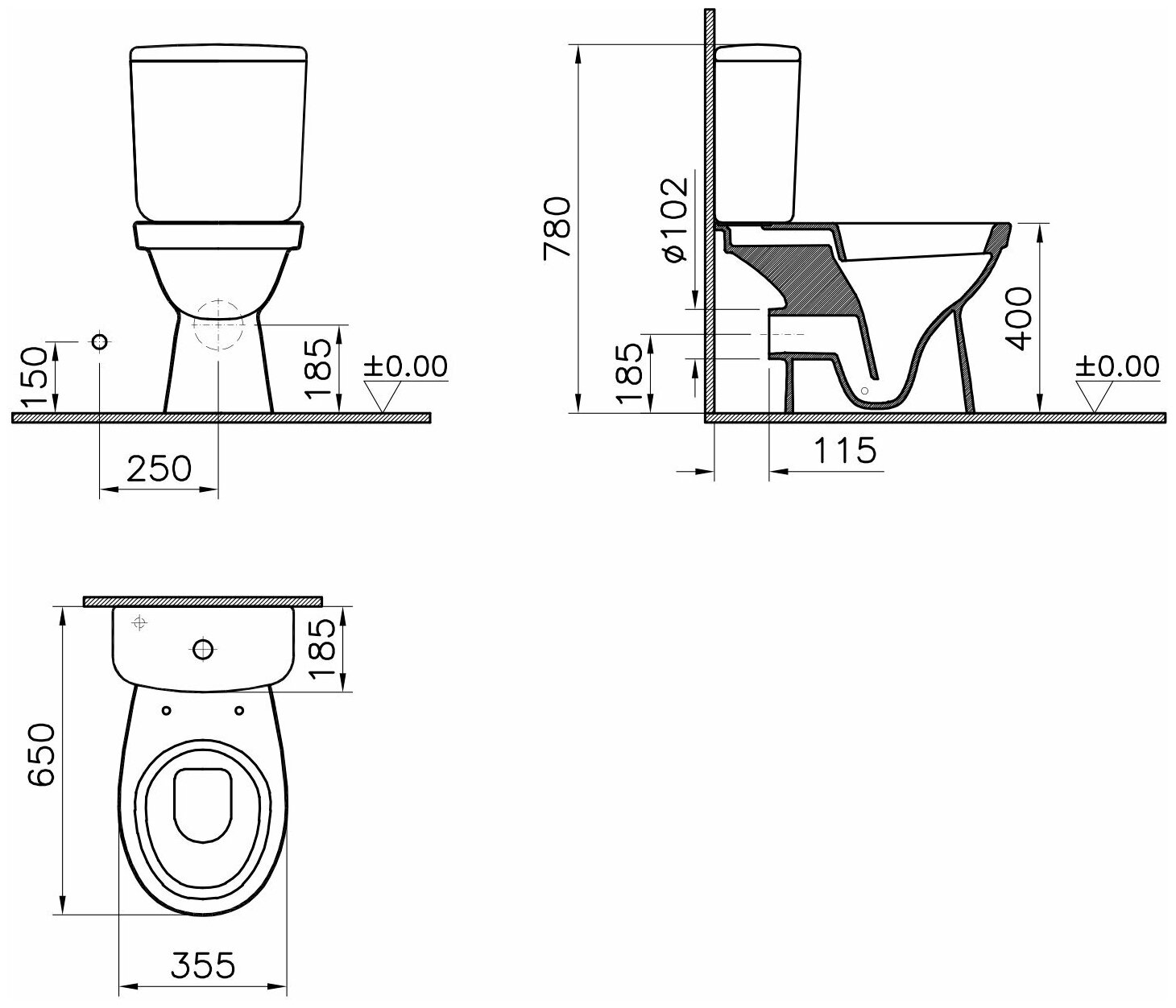 | ВКоробке | Чаша унитаза - 1 шт. Бачок - 1 шт. Крышка-сиденье - 1 шт. Инструкция - 1 шт. |