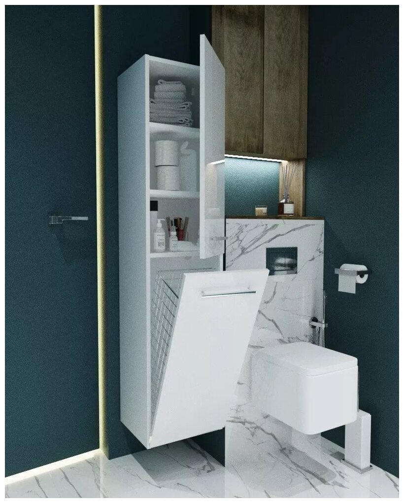 Шкаф пенал 1MarKa Соната 35Н с бельевой корзиной R Белый глянцевый