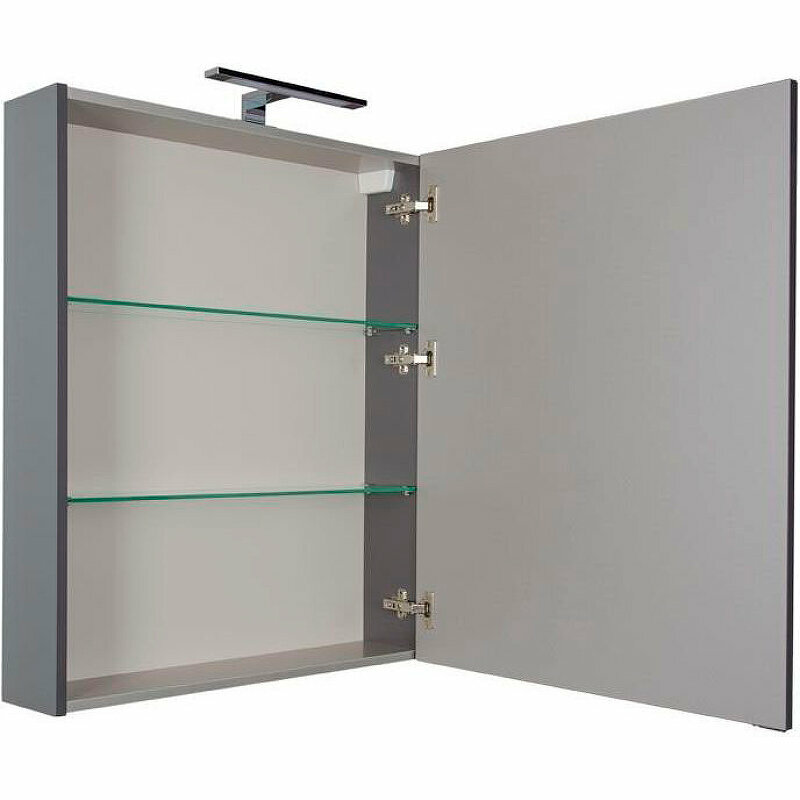 Зеркало c тремя полками из каленого стекла за распашной дверцей создает дополнительное пространство для хранения косметических средств, кроме того, всё необходимое при умывании теперь будет у вас под рукой.