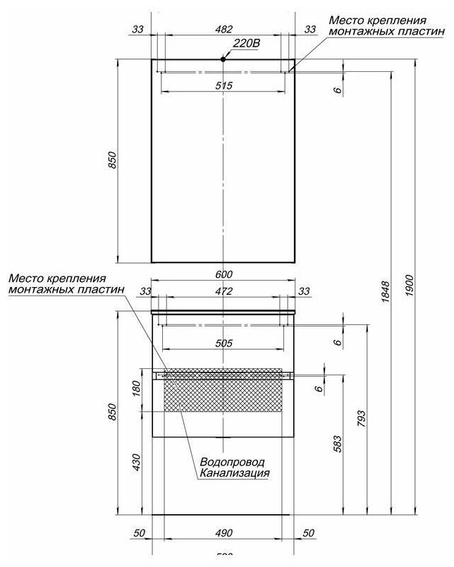 | Встроенная электрическая розетка | Без встроенной розетки |
