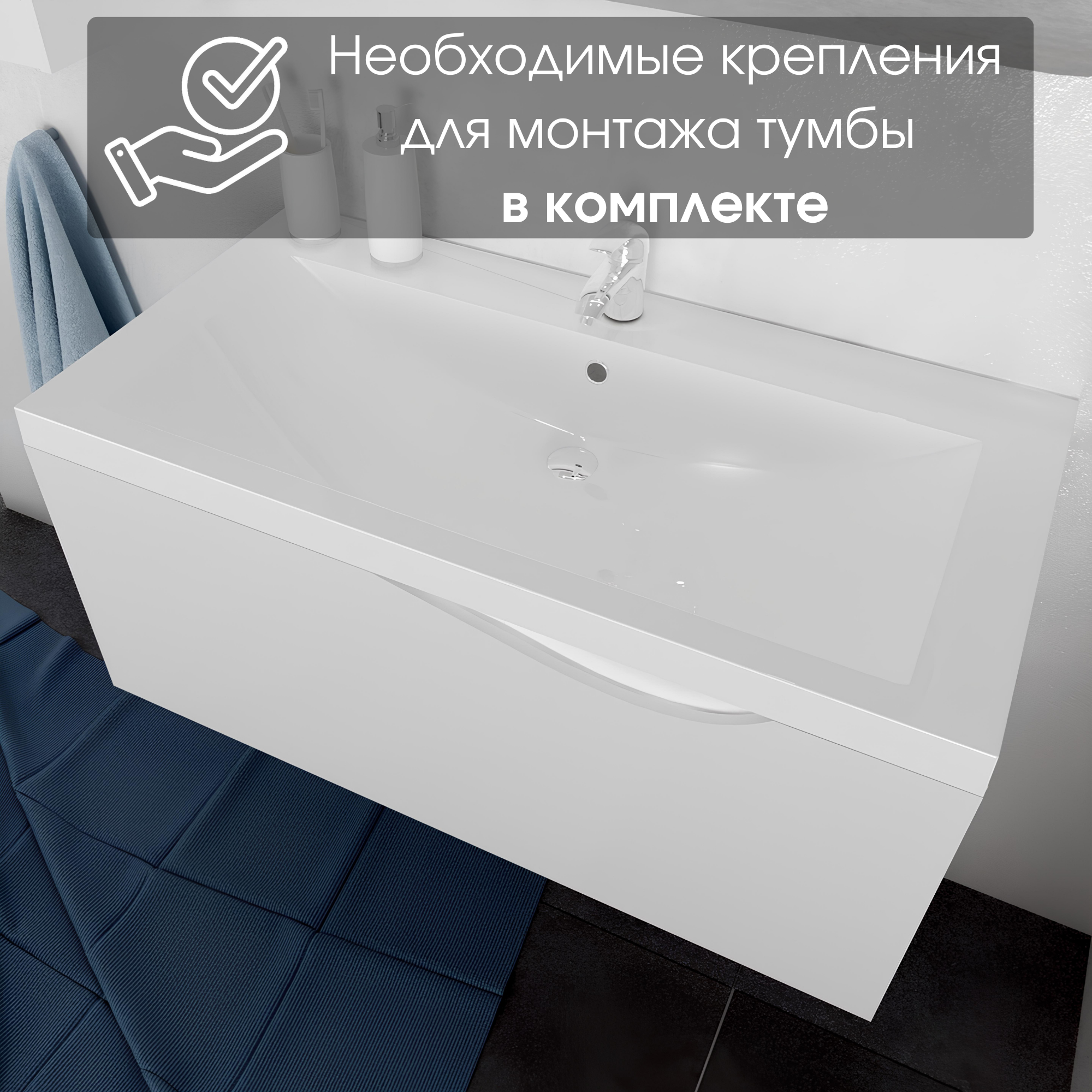 Тумба Этюд 90П 1 ящик. Белый глянец. Цвет мебели: Белый. Крепления к стене идут в комплекте. Корпус МДФ (Egger), покрытый плёнкой ПВХ. Фасад МДФ (Egger), покрытый плёнкой ПВХ. Фурнитура Hettich. Умывальник Анита 900 идет отдельно.