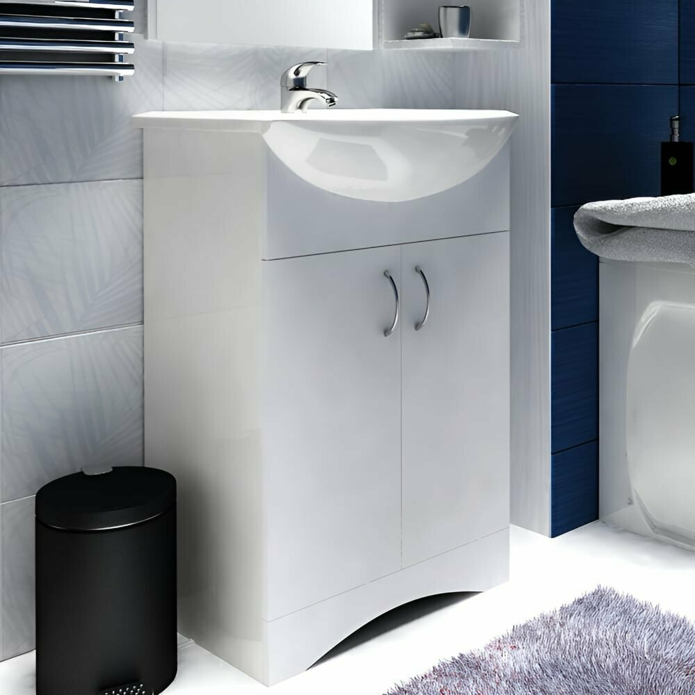 Тумба под раковину 1MarKa Уют 50Н белого цвета (У22938) с двумя дверцами долговечна и практична. Она предназначена для использования в помещениях с повышенной влажностью и отлично впишется в интерьер любой ванной комнаты.