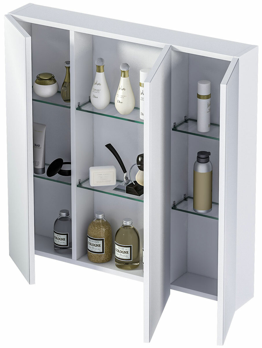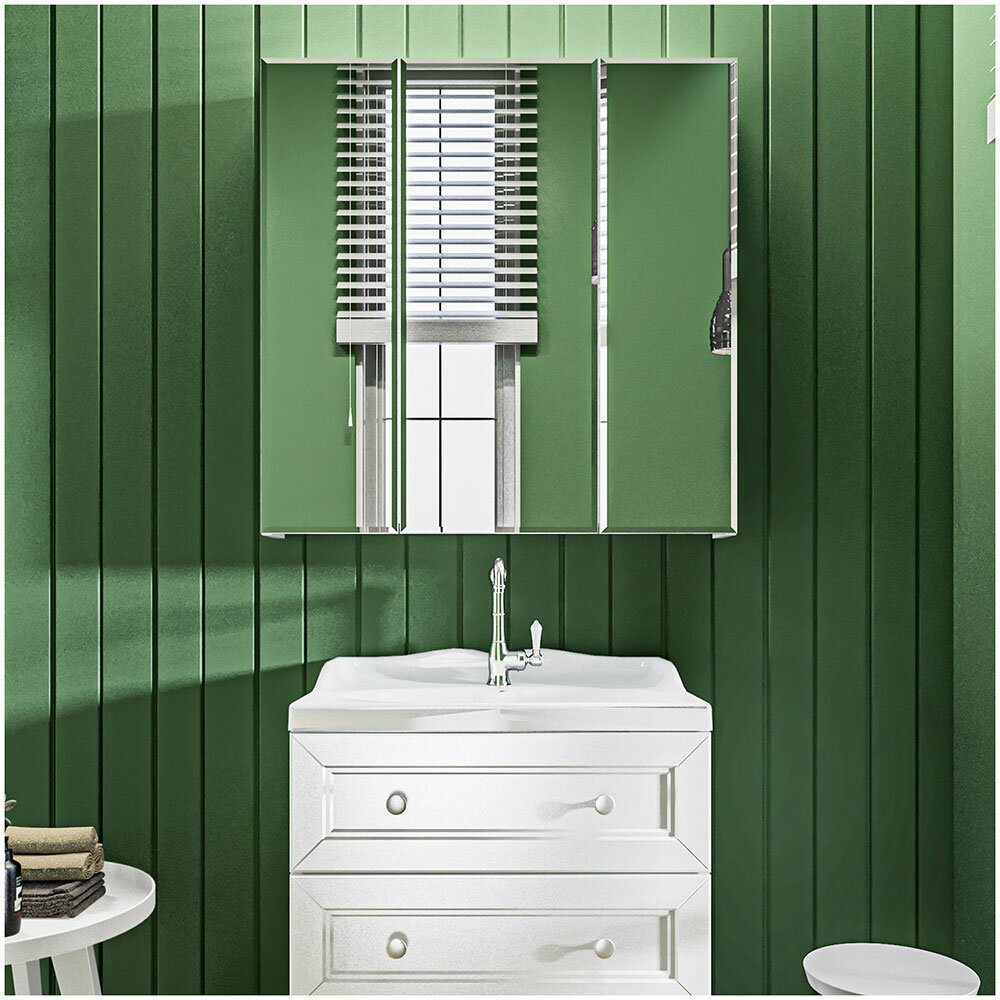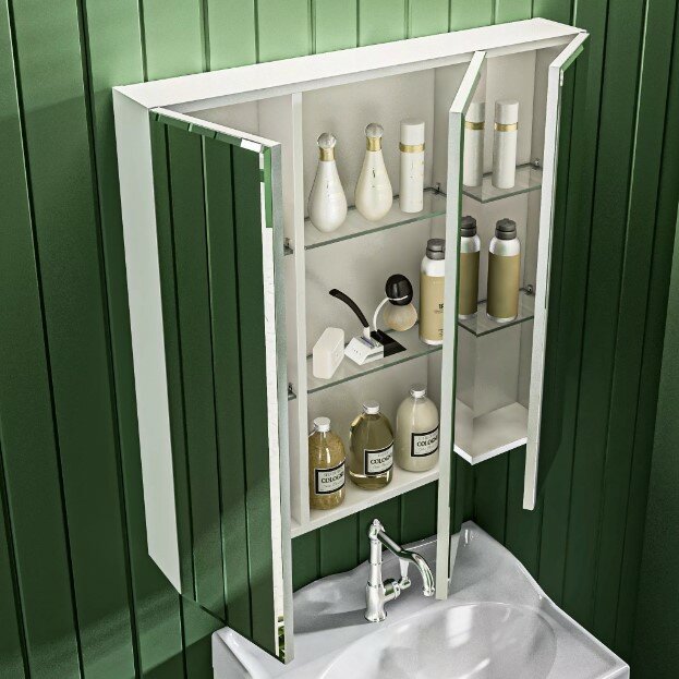 Зеркальный шкаф Marka One Mix 80 (У37180) с тремя распашными дверцами выполнен в минималистичном современном стиле. Подходит для использования в помещениях с повышенной влажностью и отлично дополнит интерьер любой ванной комнаты.