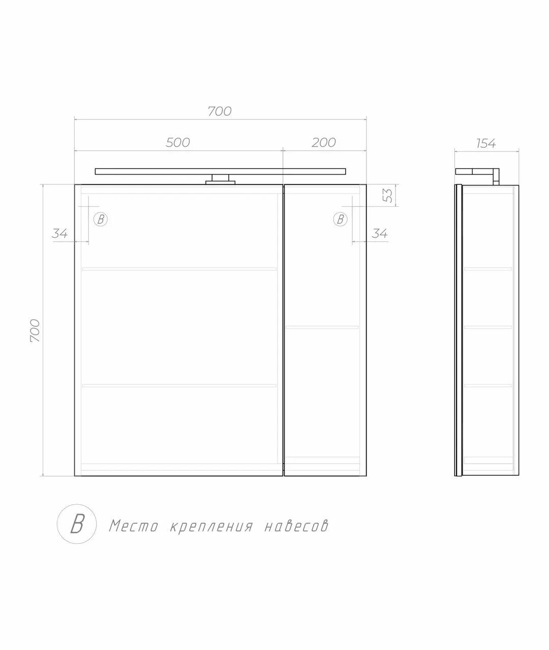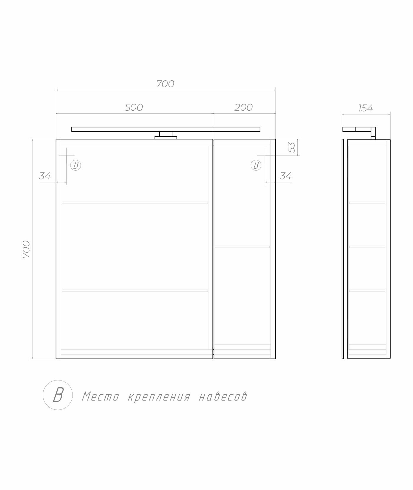 Зеркальный шкаф Vigo Kolombo 70 с подсветкой Серый