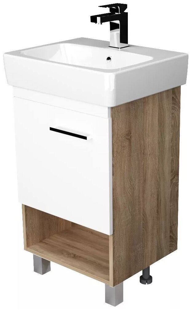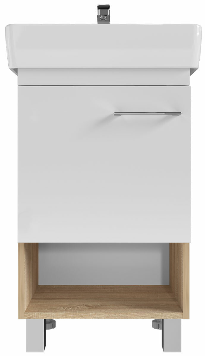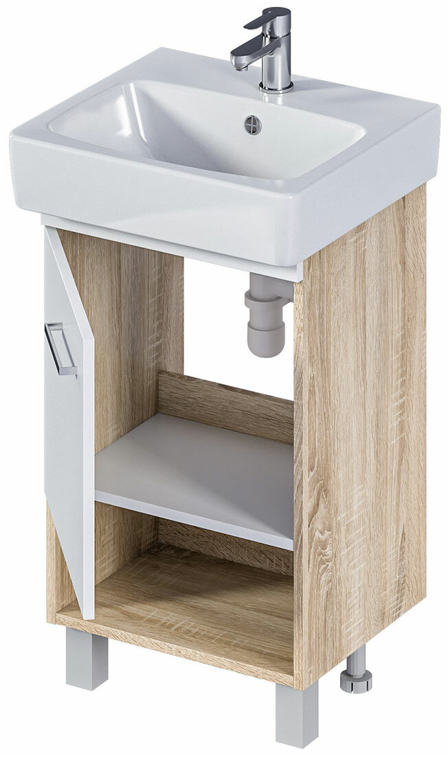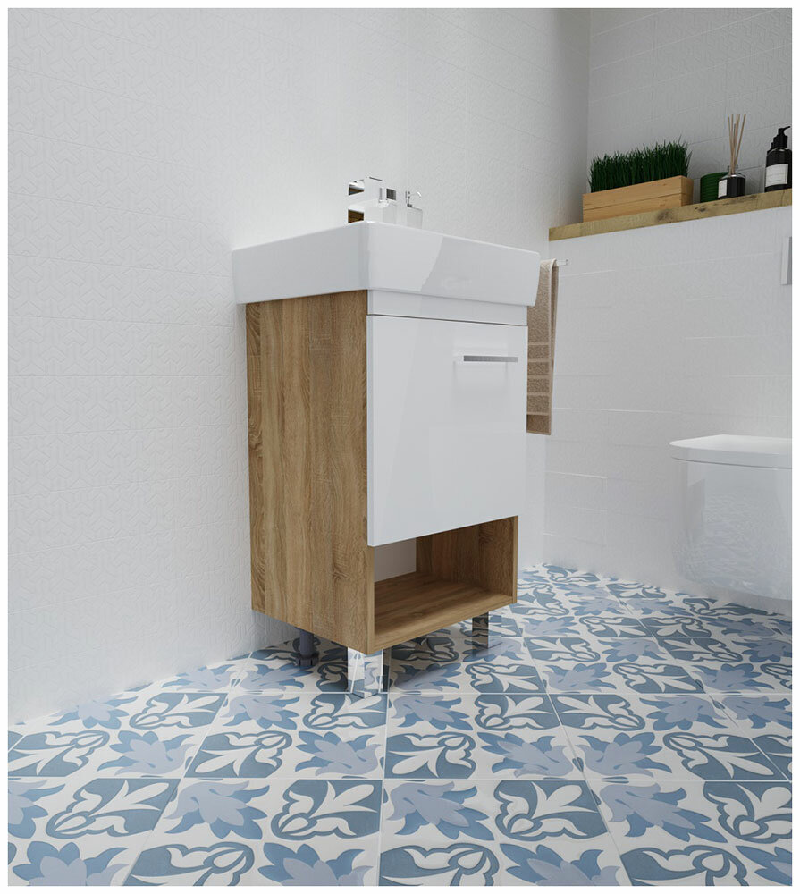 Тумба Tera 55Н 1 дверь. Дуб Сонома. Цвет мебели: Дуб Сонома. Механизм с доводчиками. Крепления к стене идут в комплекте. Компактная мебель выполнена в современном минималистичном стиле, для которого характерны правильные геометрические формы, рациональность и эргономичность. Для бережливой повседневной эксплуатации, тумбы оснащены демпферами и дверными петлями с доводчиками, обеспечивающими бесшумное и мягкое закрывание. Умывальник НЕО-55 идет отдельно.