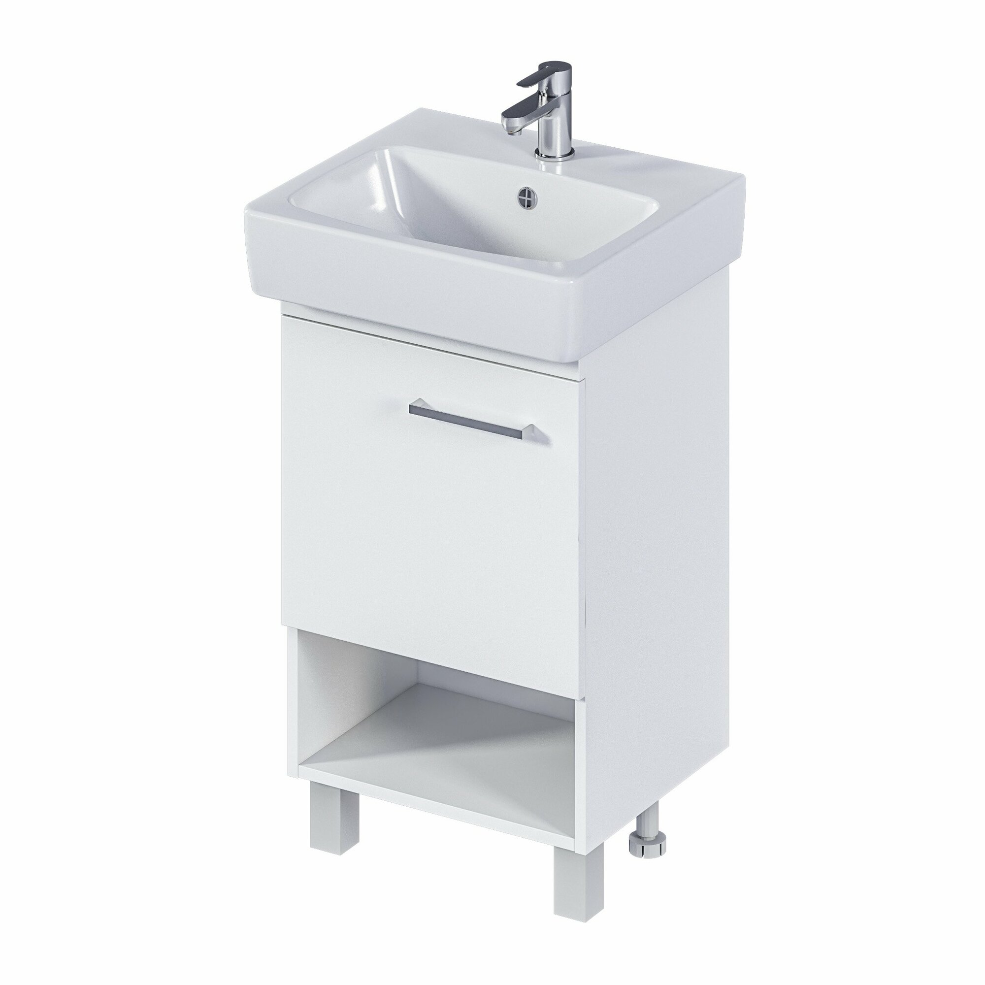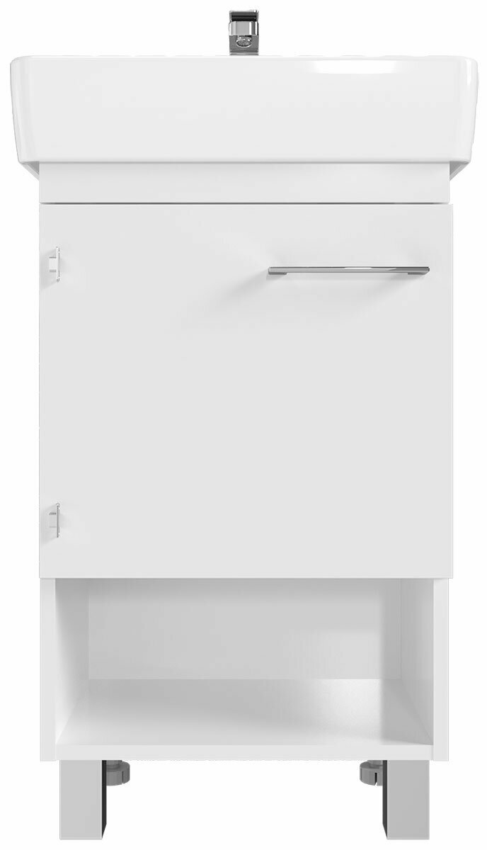 Тумба Tera 55Н 1 дверь. Белый глянец. Цвет мебели: Белый. Механизм с доводчиками. Крепления к стене идут в комплекте. Компактная мебель выполнена в современном минималистичном стиле, для которого характерны правильные геометрические формы, рациональность и эргономичность. Для бережливой повседневной эксплуатации, тумбы оснащены демпферами и дверными петлями с доводчиками, обеспечивающими бесшумное и мягкое закрывание. Умывальник НЕО-55 идет отдельно.